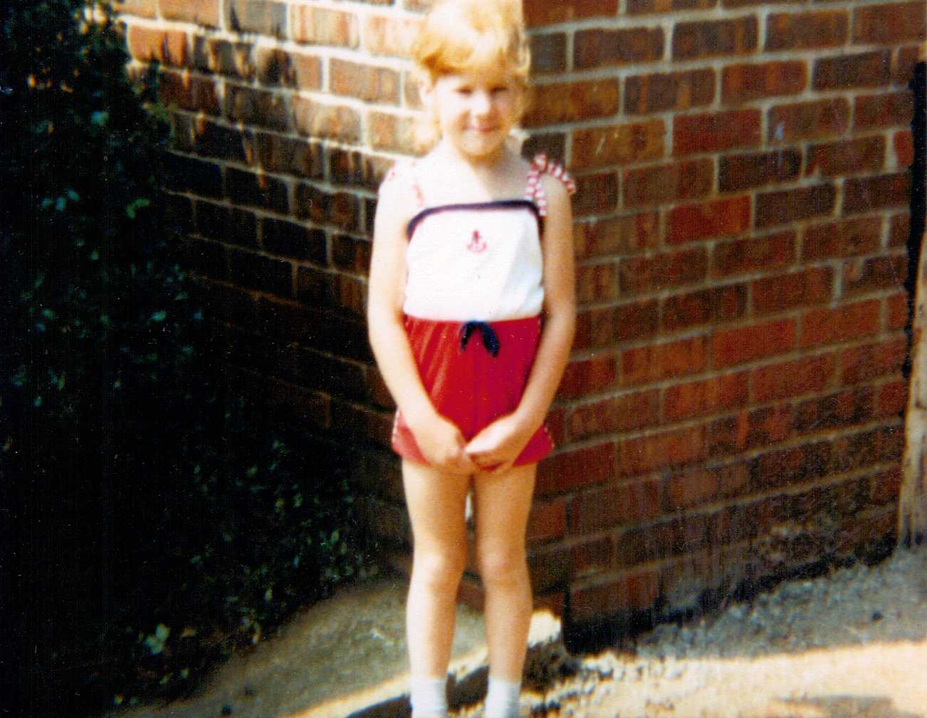 Sharon in swimsuit.